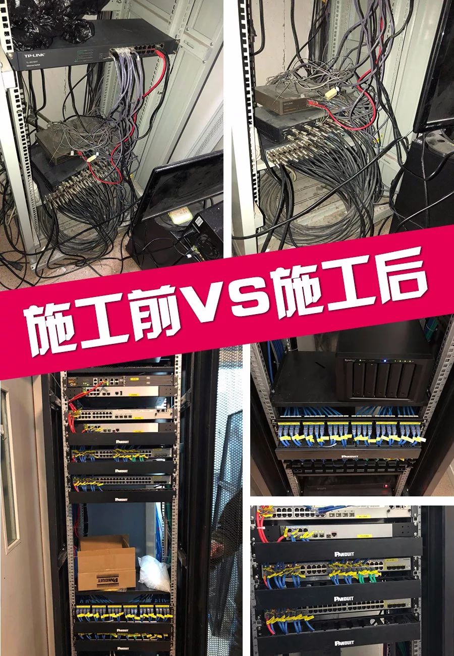 “兵貴神速”工程師在網絡設備和輔材送達后即緊鑼密鼓的進行施工。對于辦公室網絡升級改造項目中,施工布線、理線是不容忽視的一項。在整個網絡綜合布線施工過程中,確保線管預埋、穿線、模塊端接、打配線架、測試、理線、標簽、調試等等的每個環節做到“高、精、專”,同時還做到美觀、隱藏、易維護管理!