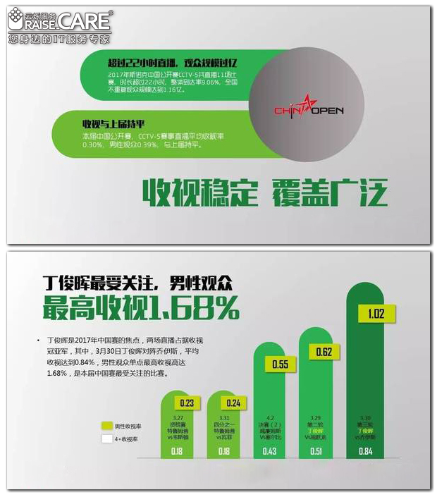據(jù)不完全統(tǒng)計(jì),CCTV-5的公開(kāi)賽平均收視0.3%,丁俊暉VS喬伊斯收視率最高!云爍的無(wú)線(xiàn)WiFi覆蓋方案,完全滿(mǎn)足了現(xiàn)場(chǎng)媒體賽前采訪(fǎng),電視媒體賽程直播時(shí)對(duì)網(wǎng)絡(luò)速度的高要求! 此次公開(kāi)賽,包括奧沙利文、世界排名第一塞爾比、衛(wèi)冕冠軍特魯姆普以及希金斯、墨菲、馬克-威廉姆斯等名將都有亮相賽場(chǎng)。