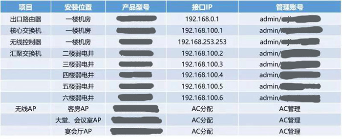 制作設備信息表格,是指對網絡中設備的型號、管理IP地址、管理賬號、安裝位置等進行記錄,方便在維護時快速了解設備的管理信息。