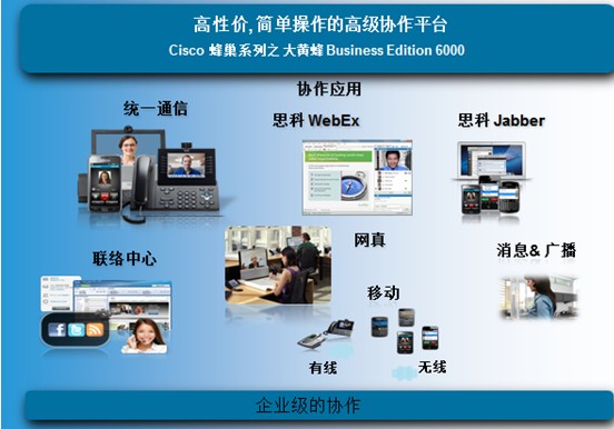 首先,思科BE6000H 型號的平臺支持八種協作應用,最多可容納 1,000 名用戶、2,500 臺設備和 100 個聯系中心坐席,可以滿足各個階段各個規模的中小企業的協作要求。簡化了企業與企業之間的溝通過程,實現隨時隨地辦公,從根本上提高用戶的工作效率,真正將移動化、可視化、社交化、客戶服務等特性融為一體!。