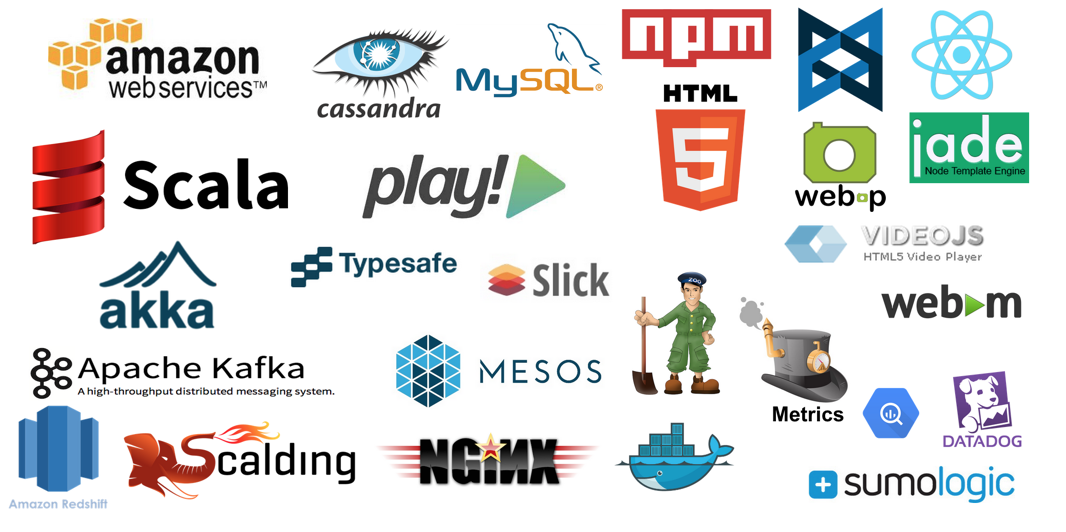 Coursera 作為創業公司,非常想保持敏捷和高效。從技術上來說,所有的都是在基于 AWS 開發,可以想像隨意啟動云端服務,做一些實驗。我們大致分成產品組,架構組,和數據分析組。我把所有用到的開發技術都列在上面。因為公司比較新,所以沒有什么歷史遺留遷移的問題。大家大膽的使用 Scala 作為主要編程語言,采用 Python 作為腳本控制,比如產品組就是提供的課程產品,里面大量使用 Play Framework,Javascript 的 backbone 作為控制中樞。而架構組主要是維護底層存儲,通用服務,性能和穩定性。